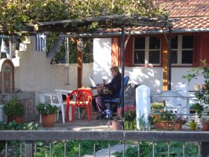 De eerste dagen in het nieuwe huis waren behoorlijk hectisch. Alles moest een plekje krijgen, en dat viel niet mee. Bovendien moest ik tussendoor gewoon mijn schrijf- en vertaalwerk doen, want tijdens de inpakweken was daar niet veel van terechtgekomen. Gelukkig hield het zonnige weer nog een poosje aan, en kon ik aan een wankel tuintafeltje op het terras regelmatig een paar uur achter mijn computer kruipen, terwijl manlief ondertussen binnen de boel op orde bracht. ’s
