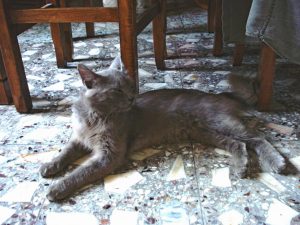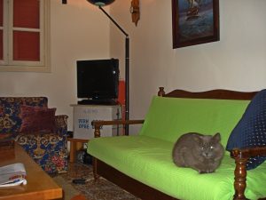 Op de eerste november was alles zo ver aangepast dat we er in ieder geval in konden wonen. Een goede vriend had zijn hulp en grote auto aangeboden, net als mijn lieve en inmiddels overleden vriendin ‘Tinus’. Terwijl de twee mannen zich het leplazerus sjouwden – ooit een wasmachine of een driezitsbank een steile smalle marmeren trap af gedragen? – namen Tineke en ik de kleinere dozen en losse rommeltjes voor ons rekening. Ik heb geen idee meer hoe vaak we met ons vierkoppig team op en neer zijn gereden, maar tegen het eind van de middag hadden we zo goed als alles op de nieuwe woonstek staan, inclusief een van de door ons gevoederde zwerfkatten.