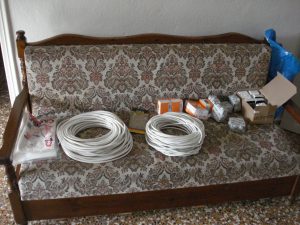 Het was bij lange na niet onze eerste verhuizing – samen hadden we er al zes achter de rug inclusief de grote emigratie, apart van elkaar nog een aantal meer – dus we hadden er inmiddels wel een aardige routine in ontwikkeld. Wel moest het allemaal nogal snel, want geld voor meer dan één maand dubbele woonlasten hadden we niet. Halverwege oktober kregen we de sleutel van onze nieuwe stek, en nog geen drie weken later leverden we de andere sleutel al bij onze ex-huisbaas in. Best wel een record als je bedenkt dat manlief in die tijd naast allerlei kleinere reparaties het nieuwe huis ook al voorzien had van uitgebreide elektrische bedrading (de stoppenkast bleek maar één groep te hebben waardoor meerdere apparaten tegelijk aanzetten onmiddellijk een stroomstoring ten gevolge had). Een andere grote klus was het verhangen van de 60 liter boiler, die op een hoogte van een meter zeventig precies boven de douchebak hing. Rechtopstaand douchen was onmogelijk, en bovendien levensgevaarlijk gezien de erbarmelijke staat van de elektrische bedrading.